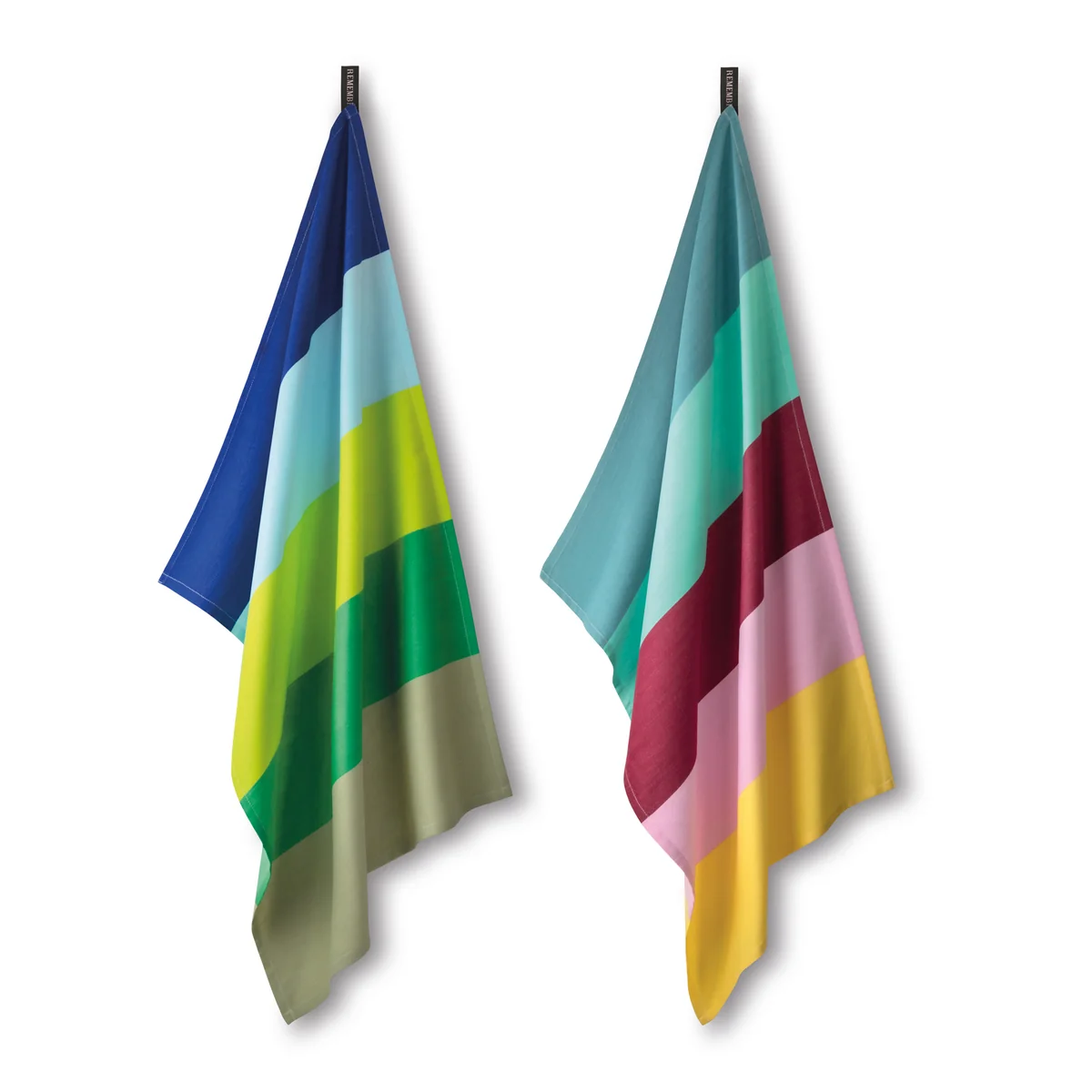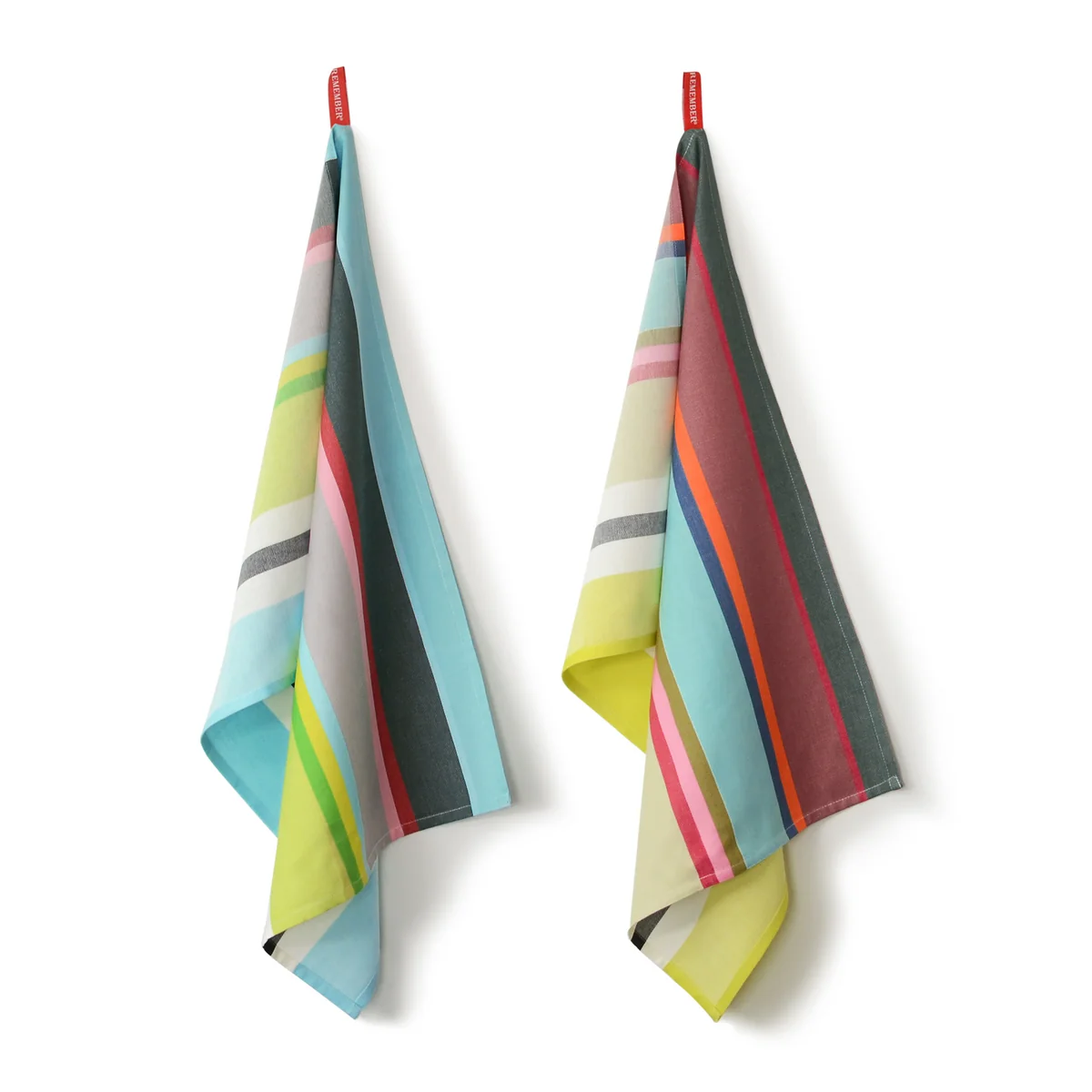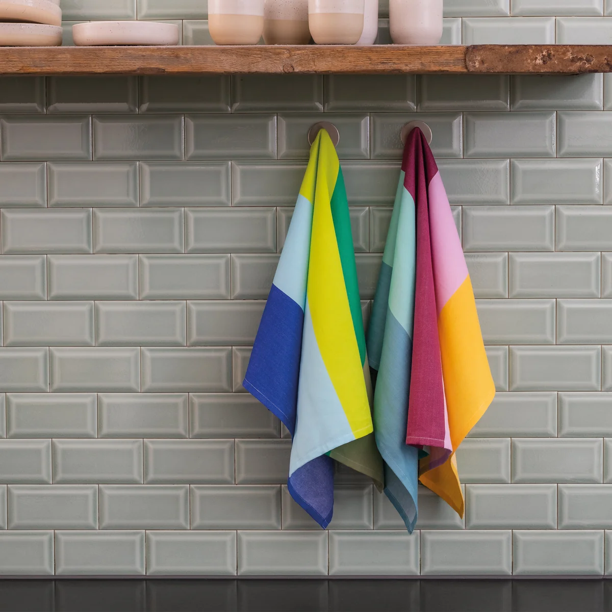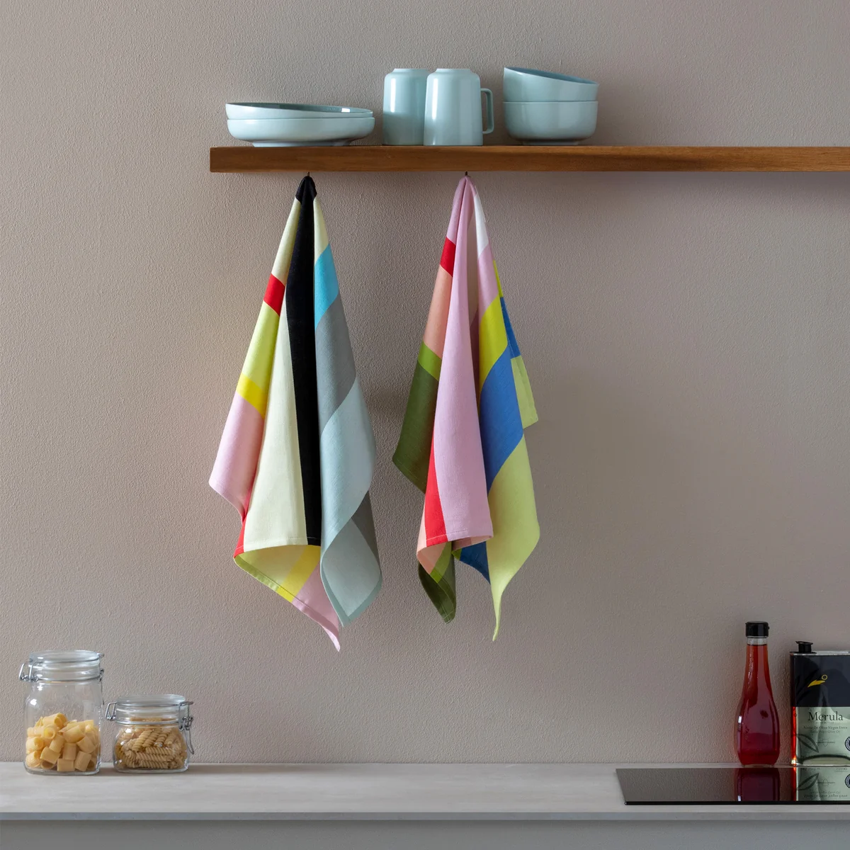 Une touche de couleur dans la cuisine : avec les torchons de Remember , même faire la vaisselle devient un plaisir.